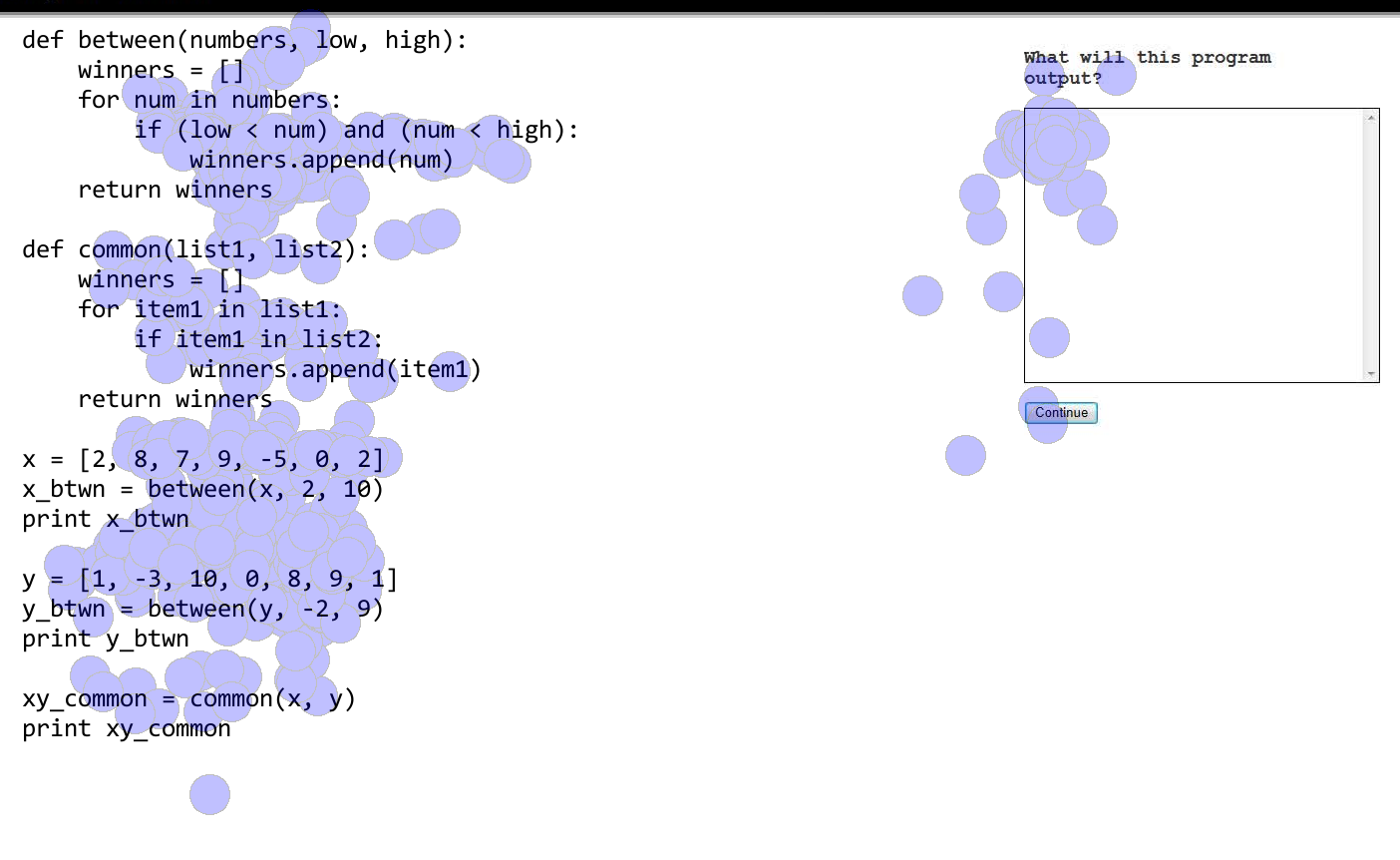 functions - between/common in functions (24 lines)inline - no functions (19 lines)counting - simple for loop with bug